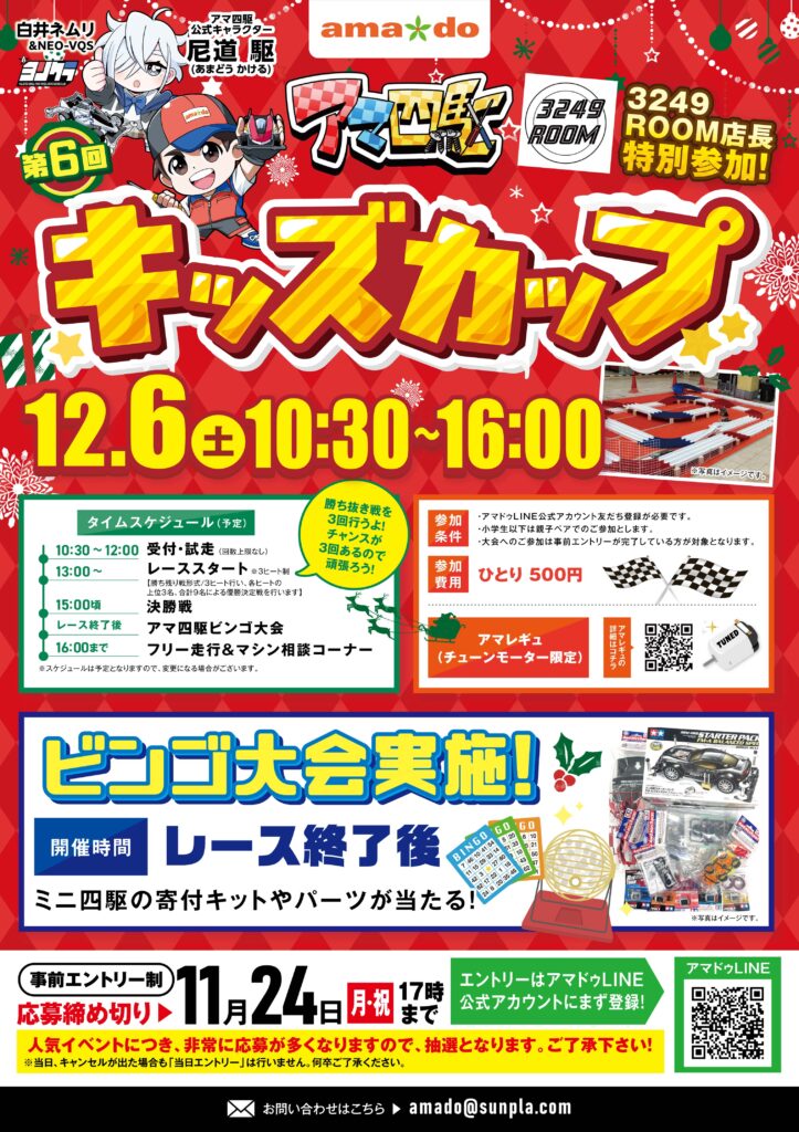 大好評につきアマ四駆キッズカップ開催します。今回はスペシャルMCとして3249ROOM店長が参戦です。