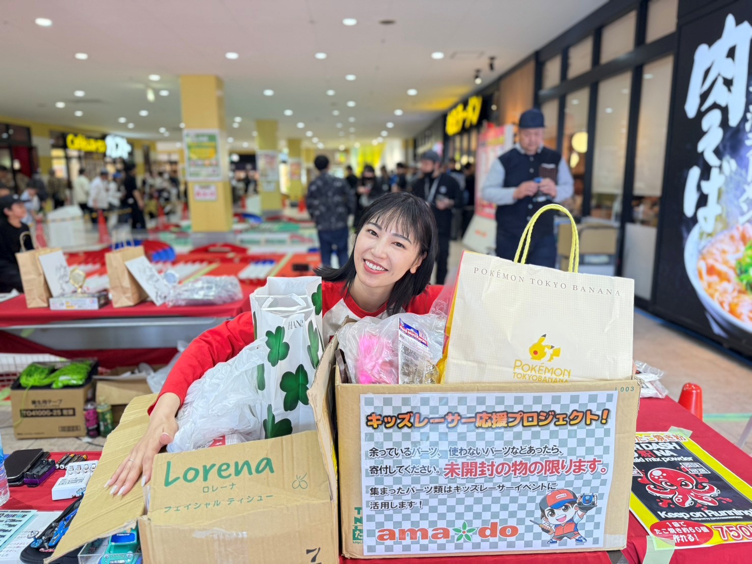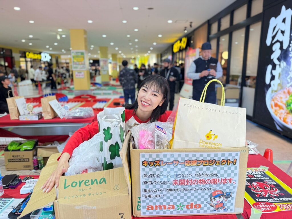 ゲストのかえさんが人気でたくさんの参加者がサインを求めていました。寄付パーツもこんなにたくさん♪皆さんありがとうございます。キッズレーサーへ還元します。